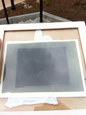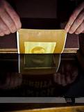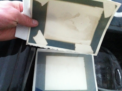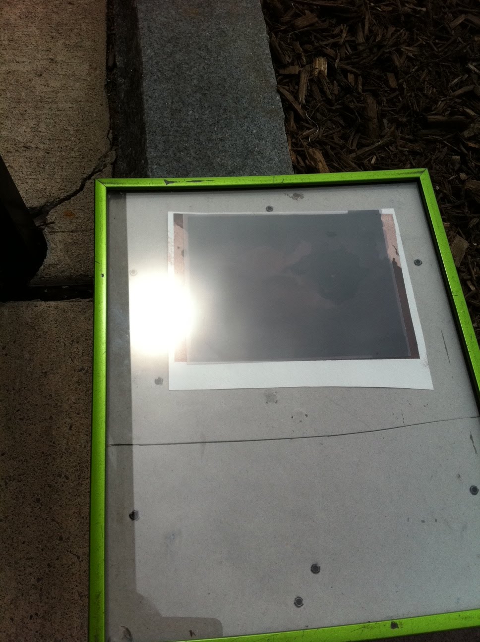 15. After it is dry, you are done making your paper! Cut it to your specifications, making sure to remove the flaps of uncoated paper. The coated paper is placed under a photo negative, and then glass to keep it in place. The contraption is then exposed in sunlight.