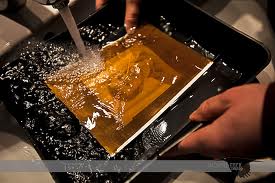 13. Take the new sensitizer and get it to room temperature, or however hot your paper is. Get the sensitizing chemical into a nice and wide Pyrex or glass container***